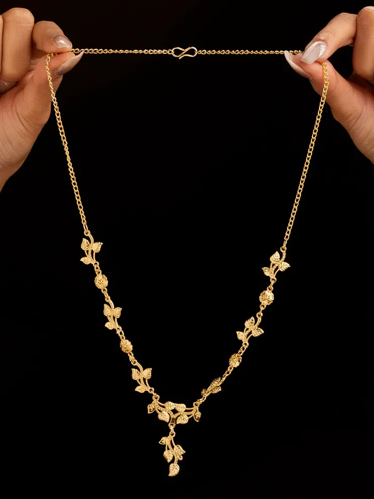 Elevate your ethnic elegance with this exquisite 18kt Chain Pendant Set Gold Plated from Mishri by Swaroop. Designed for the modern woman who cherishes tradition, this handcrafted set features intricate detailing and a radiant gold finish that captures timeless beauty. Complete with matching earrings, it’s the perfect accessory for weddings, festive occasions, or elegant evenings.